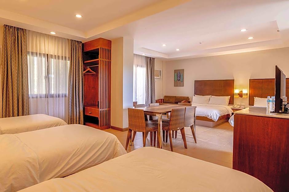 The spacious family room features air conditioning, a seating area, a terrace with pool views as well as a private bathroom boasting a walk-in shower. The unit has 3 beds.